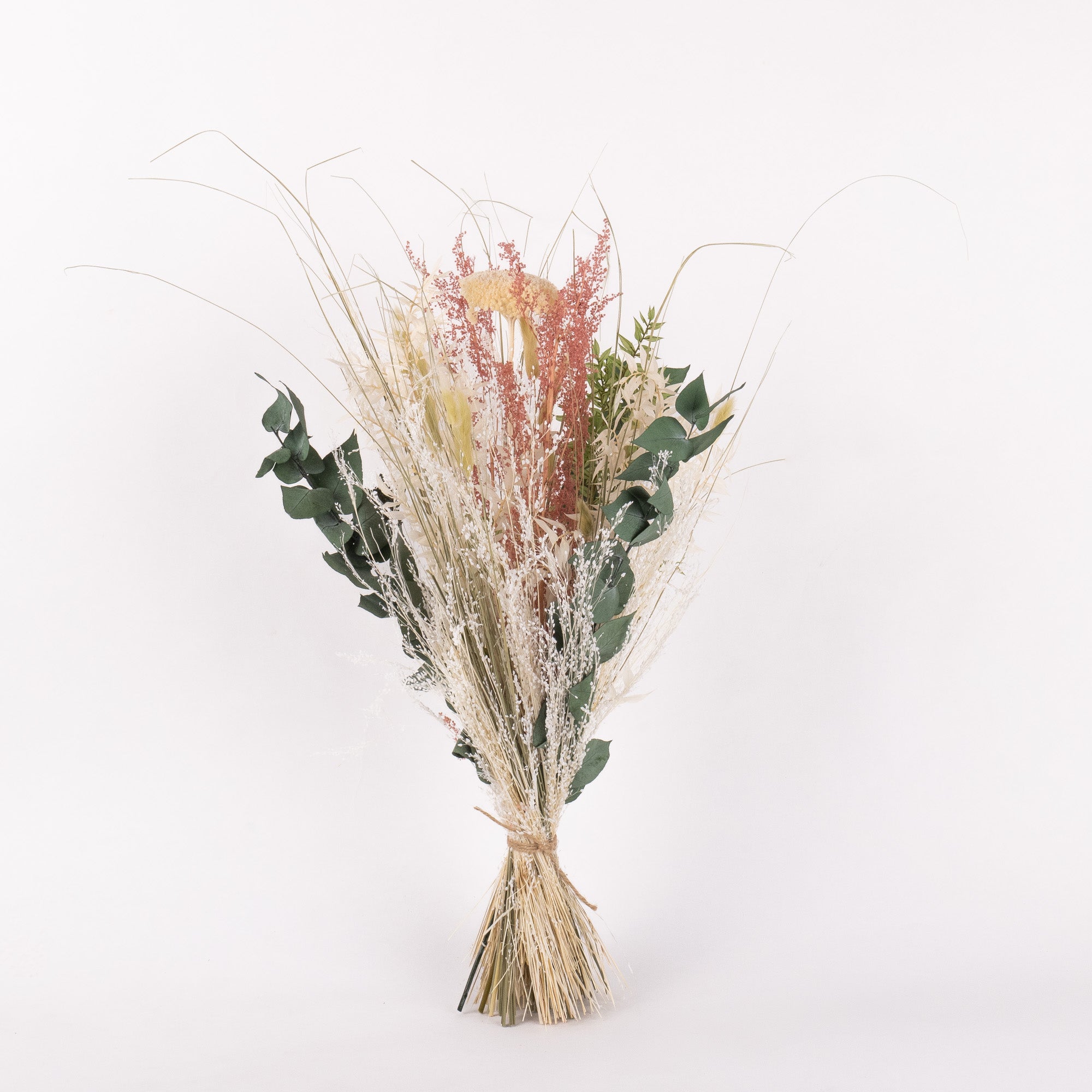 Buketterne er håndbundne i Danmark og består af nøje udvalgte, 100 % naturlige tørrede blomster.
