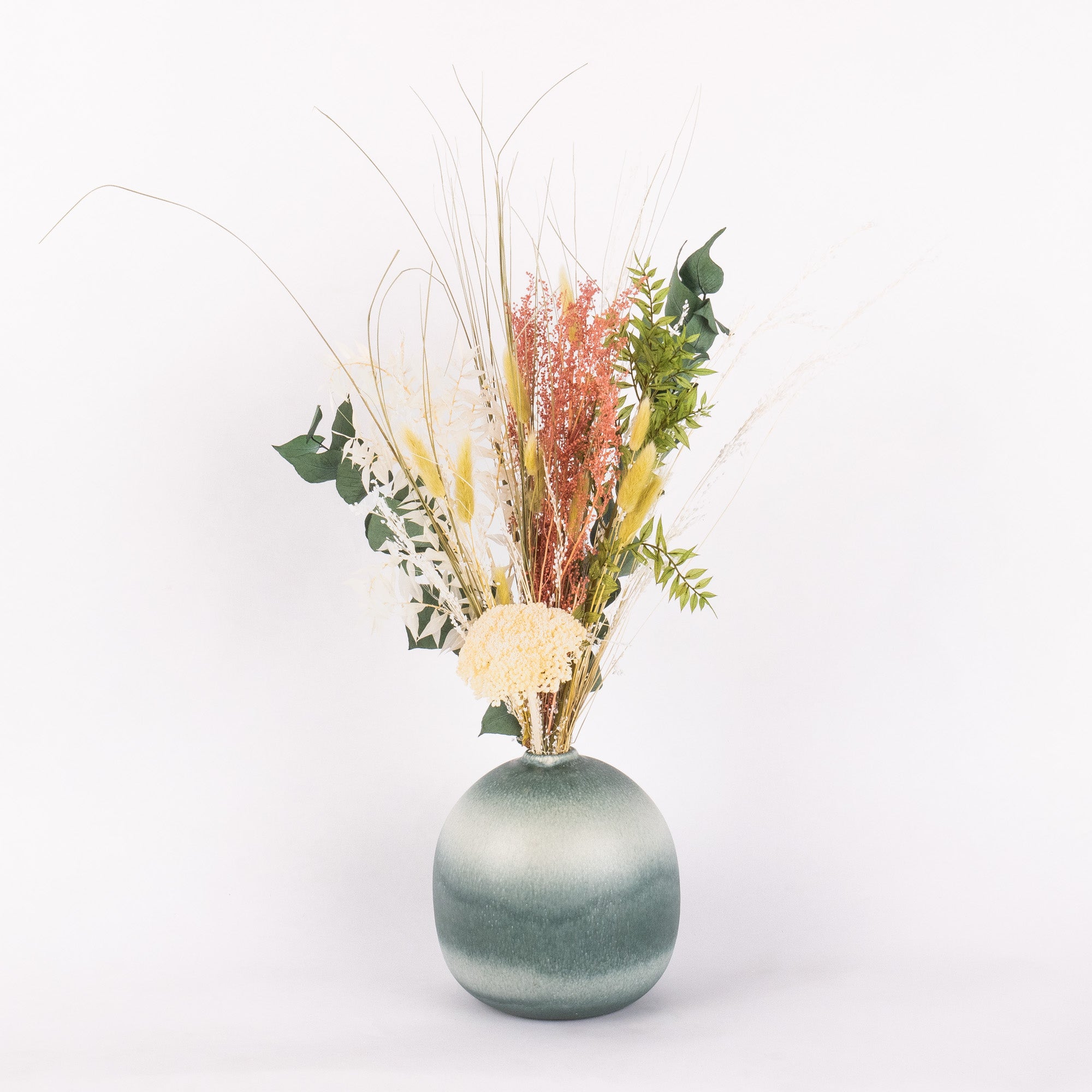 Tørrede blomster i en smuk blanding af hvide, grønne, gule og røde nuancer, du selv kan sammensætte i din yndlingskombination.
