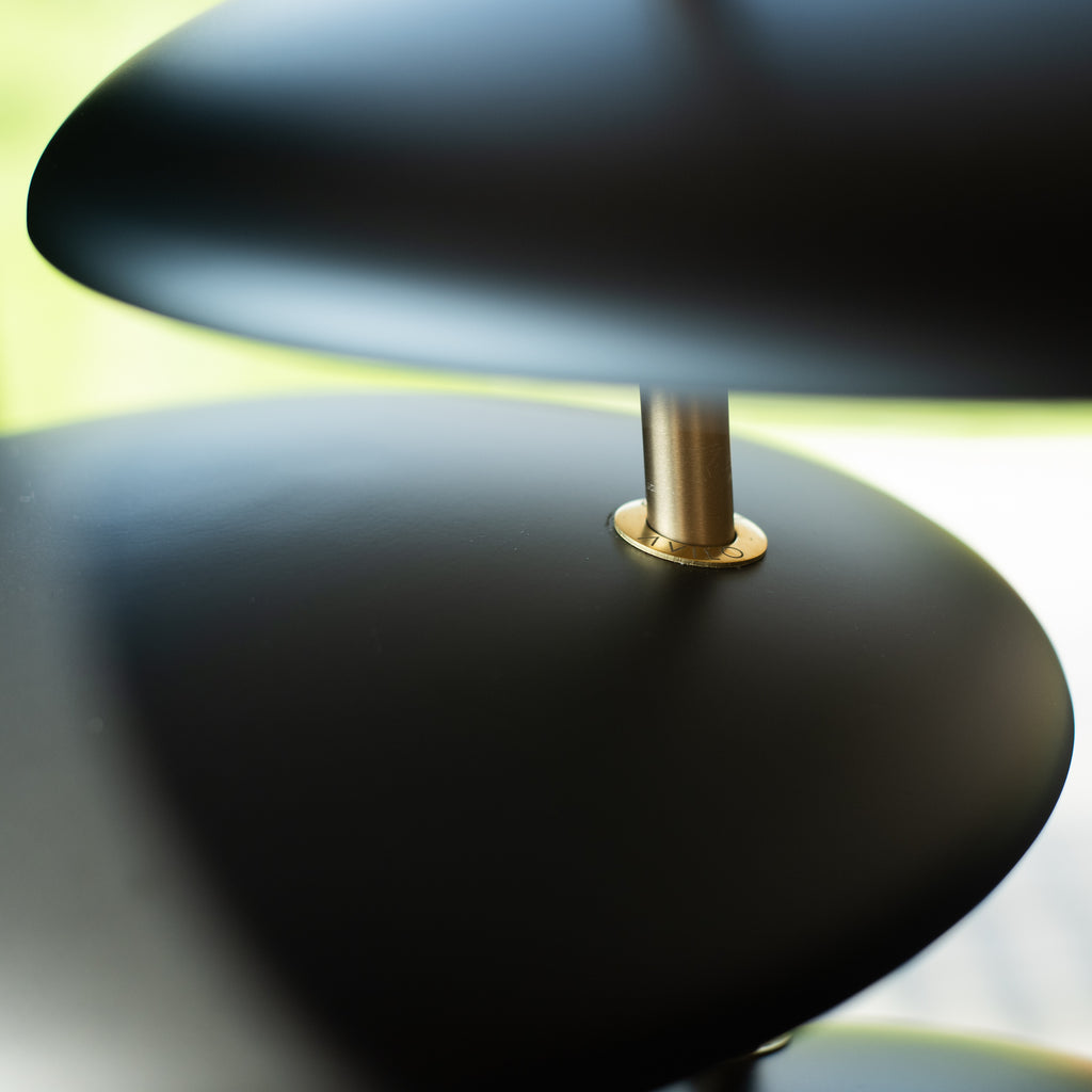 Fremstillet i massiv messing og spundet aluminium, giver lampen en eksklusiv følelse af godt håndværk og lækre materialer.